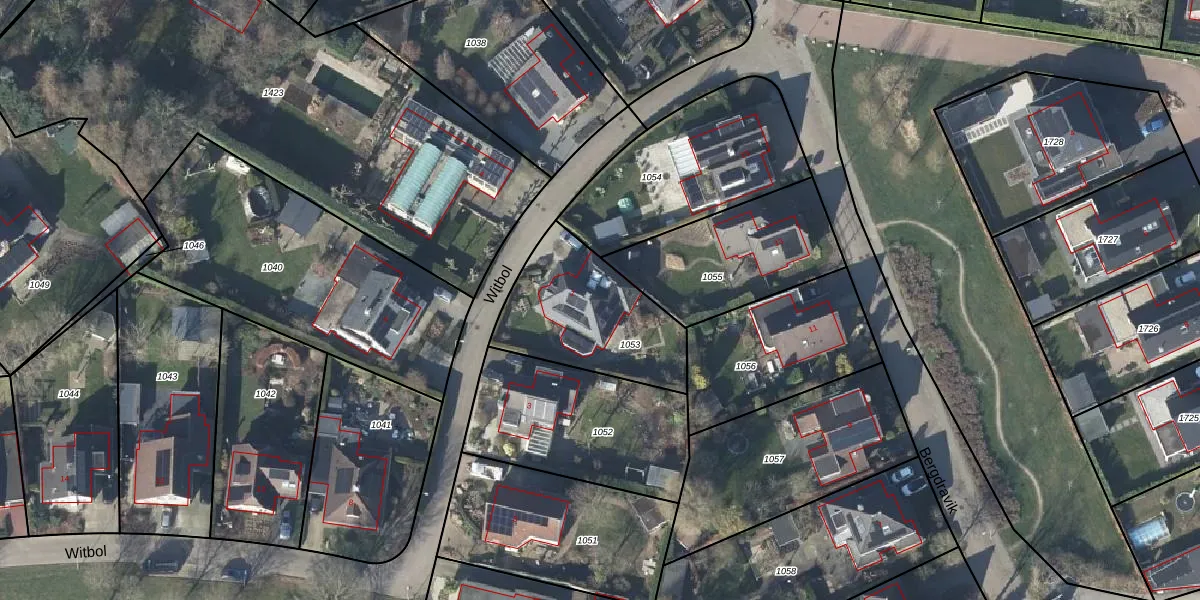 Het perceel waarop Witbol 1 staat heeft een oppervlakte van 530 m². Dit is een groot perceel. De perceeloppervlakte wordt geregistreerd door het Kadaster. Gedetailleerde informatie over de maten van dit perceel kunt u vinden in het rapport Kadastrale kaart met maatvoering van Witbol 1.