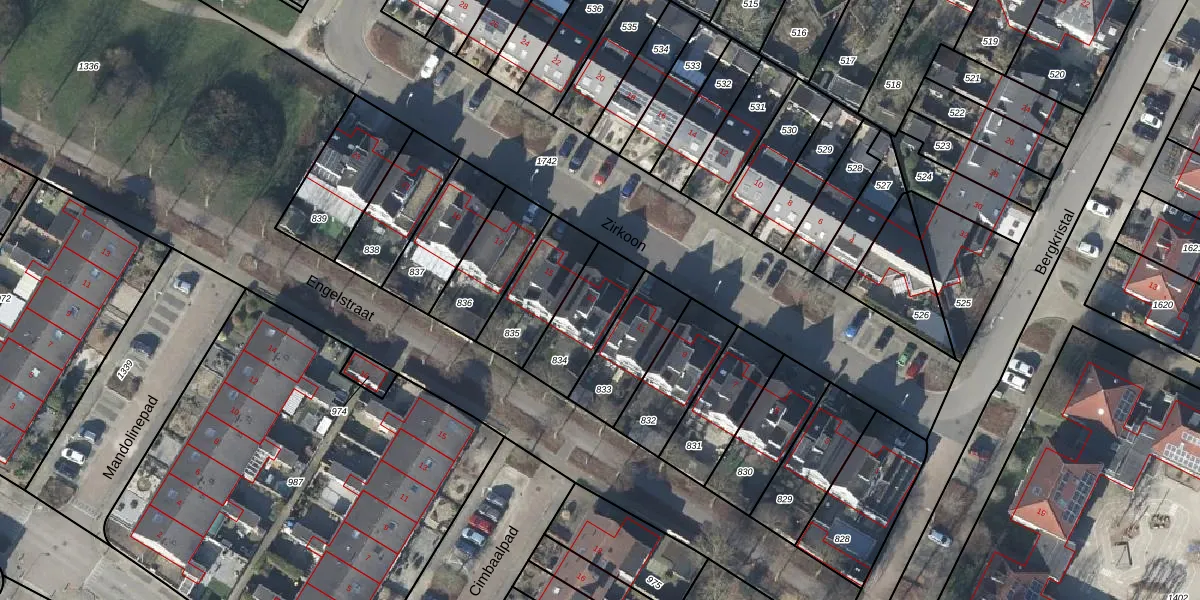 Gebruik de zoekbalk of klik op een perceel voor informatie over de adressen binnen dit perceel.