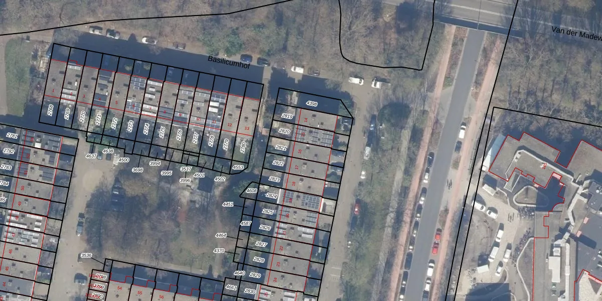 Gebruik de zoekbalk of klik op een perceel voor informatie over de adressen binnen dit perceel.
