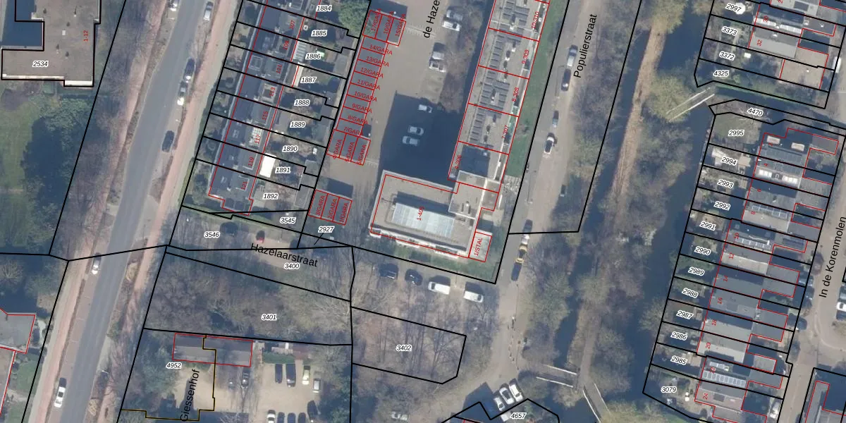 Het perceel waarop de Hazelaar 203 staat heeft een oppervlakte van 5190 m². Dit is een zeer groot perceel. De perceeloppervlakte wordt geregistreerd door het Kadaster. Gedetailleerde informatie over de maten van dit perceel kunt u vinden in het rapport Kadastrale kaart met maatvoering van de Hazelaar 203.