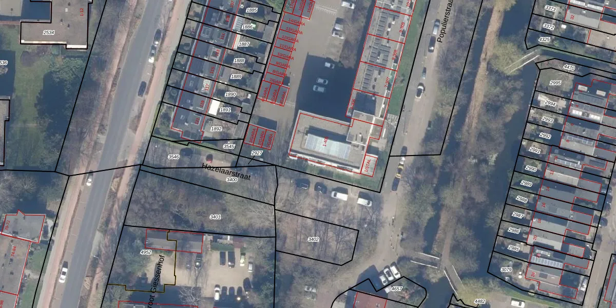 Het perceel waarop de Hazelaar 402 staat heeft een oppervlakte van 5190 m². Dit is een zeer groot perceel. De perceeloppervlakte wordt geregistreerd door het Kadaster. Gedetailleerde informatie over de maten van dit perceel kunt u vinden in het rapport Kadastrale kaart met maatvoering van de Hazelaar 402.