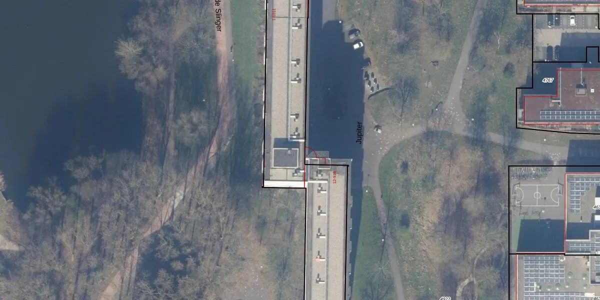 Het perceel waarop Jupiter 10 staat heeft een oppervlakte van 4247 m². Dit is een zeer groot perceel. De perceeloppervlakte wordt geregistreerd door het Kadaster. Gedetailleerde informatie over de maten van dit perceel kunt u vinden in het rapport Kadastrale kaart met maatvoering van Jupiter 10.