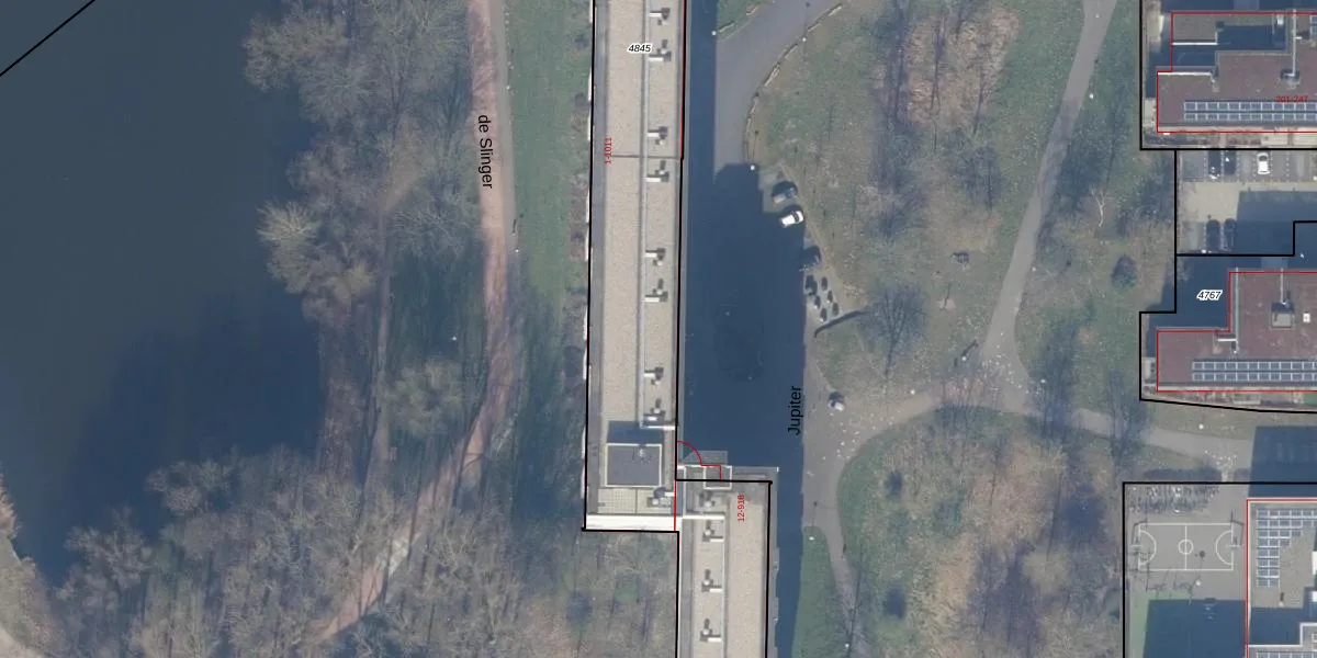 Het perceel waarop Jupiter 108 staat heeft een oppervlakte van 4247 m². Dit is een zeer groot perceel. De perceeloppervlakte wordt geregistreerd door het Kadaster. Gedetailleerde informatie over de maten van dit perceel kunt u vinden in het rapport Kadastrale kaart met maatvoering van Jupiter 108.