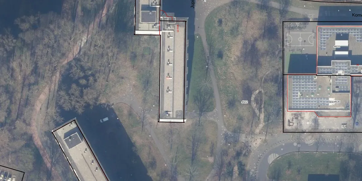 Het perceel waarop Jupiter 16 staat heeft een oppervlakte van 4247 m². Dit is een zeer groot perceel. De perceeloppervlakte wordt geregistreerd door het Kadaster. Gedetailleerde informatie over de maten van dit perceel kunt u vinden in het rapport Kadastrale kaart met maatvoering van Jupiter 16.