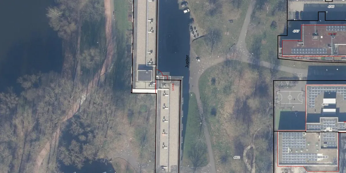 Het perceel waarop Jupiter 212 staat heeft een oppervlakte van 4247 m². Dit is een zeer groot perceel. De perceeloppervlakte wordt geregistreerd door het Kadaster. Gedetailleerde informatie over de maten van dit perceel kunt u vinden in het rapport Kadastrale kaart met maatvoering van Jupiter 212.