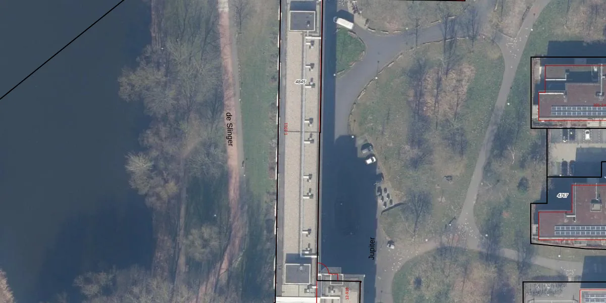 Het perceel waarop Jupiter 306 staat heeft een oppervlakte van 4247 m². Dit is een zeer groot perceel. De perceeloppervlakte wordt geregistreerd door het Kadaster. Gedetailleerde informatie over de maten van dit perceel kunt u vinden in het rapport Kadastrale kaart met maatvoering van Jupiter 306.