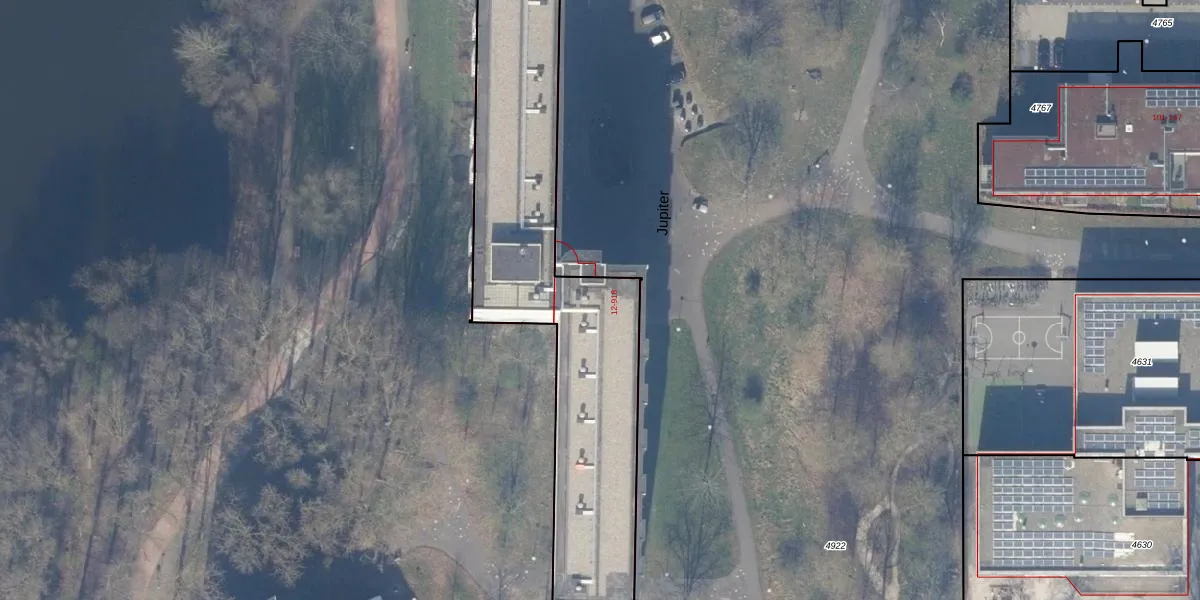 Het perceel waarop Jupiter 412 staat heeft een oppervlakte van 4247 m². Dit is een zeer groot perceel. De perceeloppervlakte wordt geregistreerd door het Kadaster. Gedetailleerde informatie over de maten van dit perceel kunt u vinden in het rapport Kadastrale kaart met maatvoering van Jupiter 412.