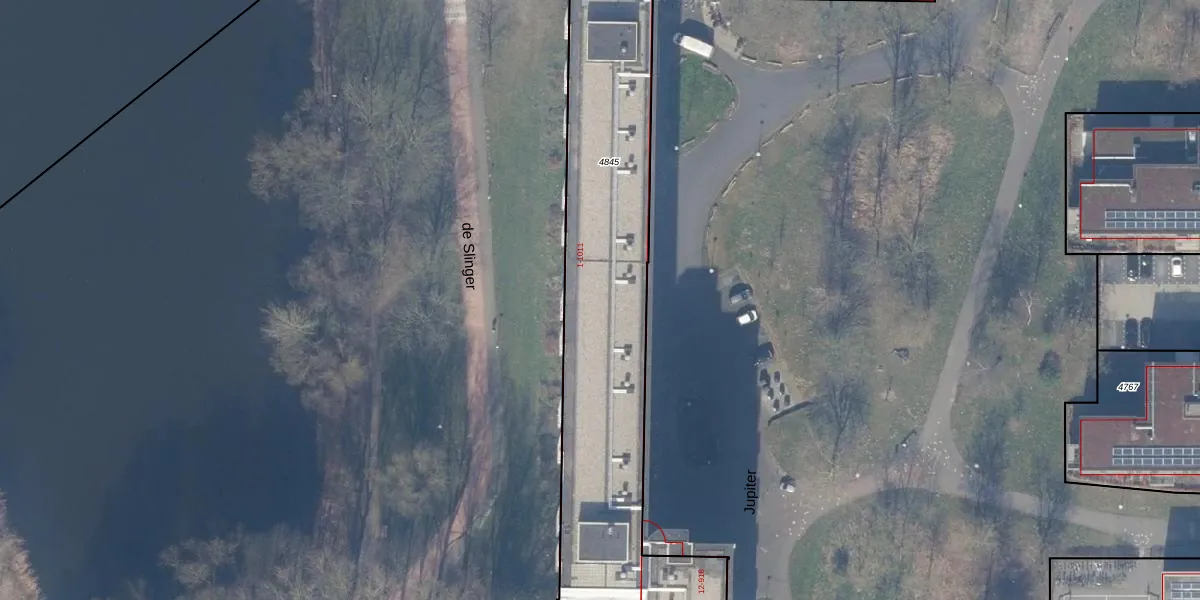 Het perceel waarop Jupiter 506 staat heeft een oppervlakte van 4247 m². Dit is een zeer groot perceel. De perceeloppervlakte wordt geregistreerd door het Kadaster. Gedetailleerde informatie over de maten van dit perceel kunt u vinden in het rapport Kadastrale kaart met maatvoering van Jupiter 506.
