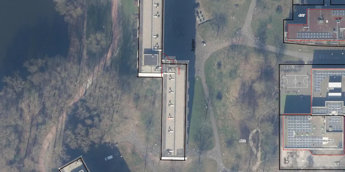 Het perceel waarop Jupiter 513 staat heeft een oppervlakte van 4247 m². Dit is een zeer groot perceel. De perceeloppervlakte wordt geregistreerd door het Kadaster. Gedetailleerde informatie over de maten van dit perceel kunt u vinden in het rapport Kadastrale kaart met maatvoering van Jupiter 513.