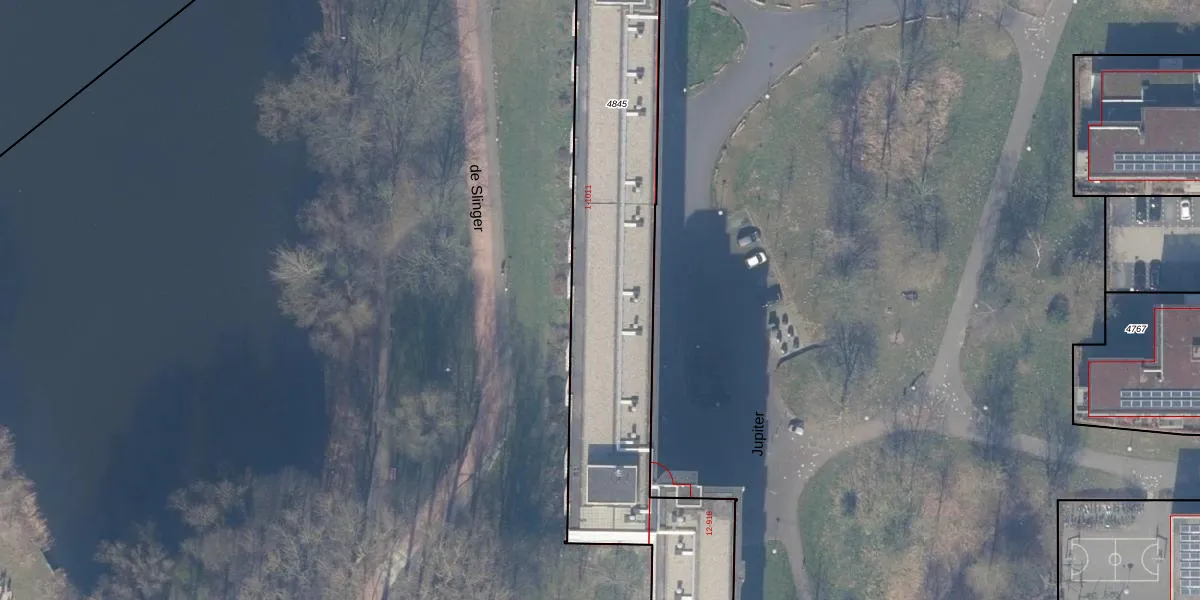 Het perceel waarop Jupiter 607 staat heeft een oppervlakte van 4247 m². Dit is een zeer groot perceel. De perceeloppervlakte wordt geregistreerd door het Kadaster. Gedetailleerde informatie over de maten van dit perceel kunt u vinden in het rapport Kadastrale kaart met maatvoering van Jupiter 607.