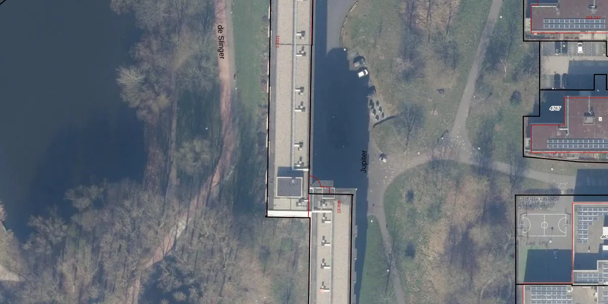 Het perceel waarop Jupiter 9 staat heeft een oppervlakte van 4247 m². Dit is een zeer groot perceel. De perceeloppervlakte wordt geregistreerd door het Kadaster. Gedetailleerde informatie over de maten van dit perceel kunt u vinden in het rapport Kadastrale kaart met maatvoering van Jupiter 9.
