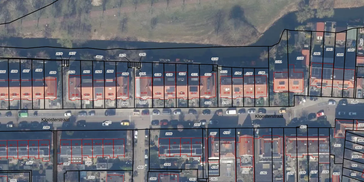 Kloosterstraat 54 is gelegen op kadastraal perceel ASL00B3114. Deze kadastrale aanduiding is uniek en wordt gebruikt door het Kadaster om eigendomsrechten en andere zakelijke rechten vast te leggen. Het perceel maakt onderdeel uit van de kadastrale gemeente Ouder-Amstel.
