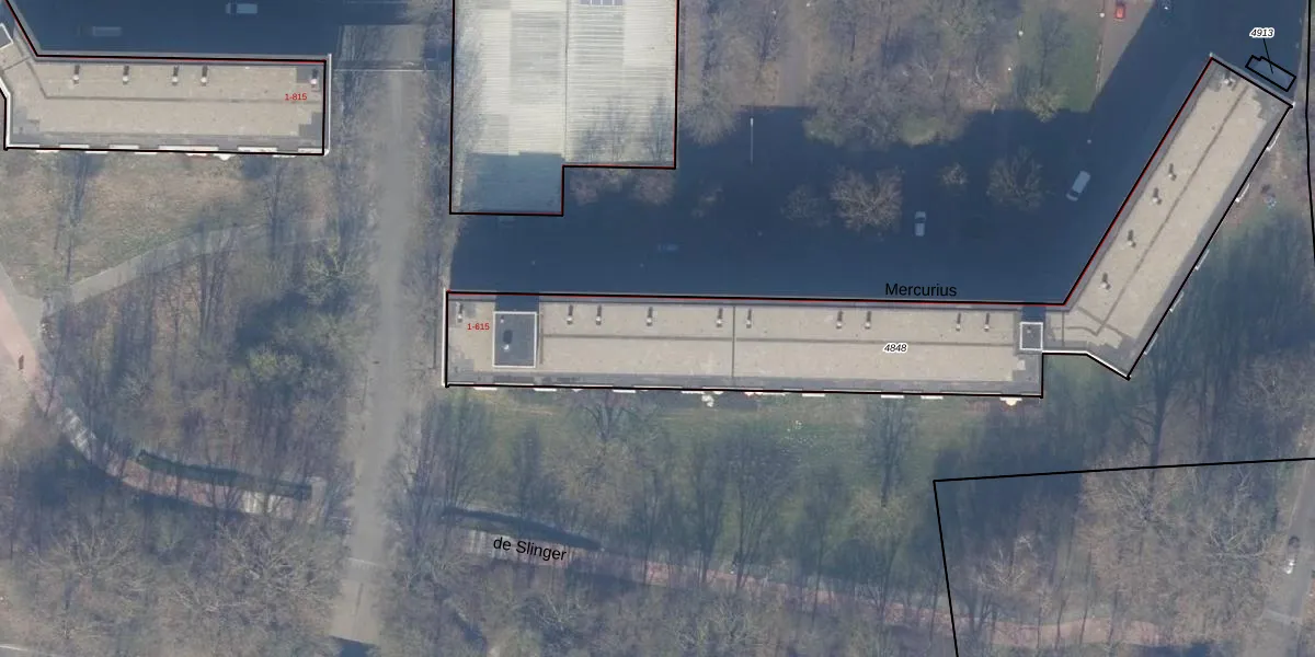 Het perceel waarop Mercurius 104 staat heeft een oppervlakte van 1975 m². Dit is een zeer groot perceel. De perceeloppervlakte wordt geregistreerd door het Kadaster. Gedetailleerde informatie over de maten van dit perceel kunt u vinden in het rapport Kadastrale kaart met maatvoering van Mercurius 104.