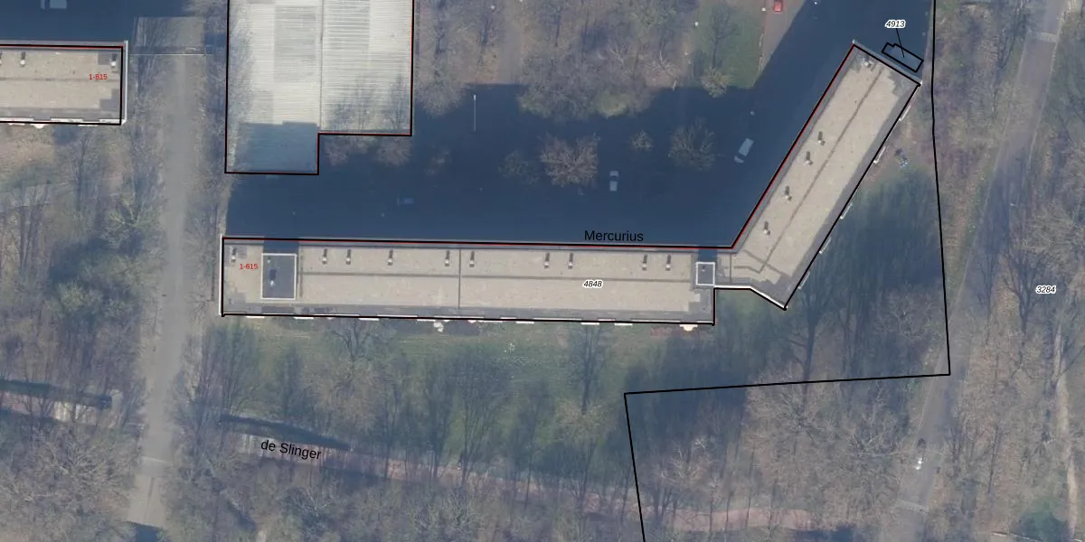 Het perceel waarop Mercurius 107 staat heeft een oppervlakte van 1975 m². Dit is een zeer groot perceel. De perceeloppervlakte wordt geregistreerd door het Kadaster. Gedetailleerde informatie over de maten van dit perceel kunt u vinden in het rapport Kadastrale kaart met maatvoering van Mercurius 107.