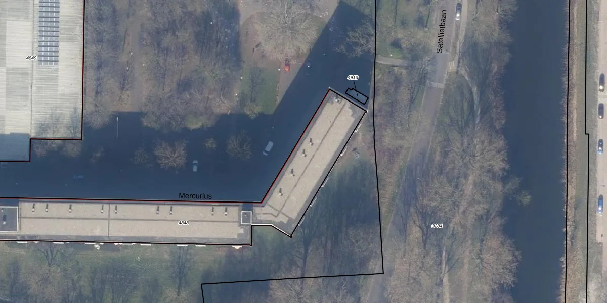 Het perceel waarop Mercurius 13 staat heeft een oppervlakte van 1975 m². Dit is een zeer groot perceel. De perceeloppervlakte wordt geregistreerd door het Kadaster. Gedetailleerde informatie over de maten van dit perceel kunt u vinden in het rapport Kadastrale kaart met maatvoering van Mercurius 13.