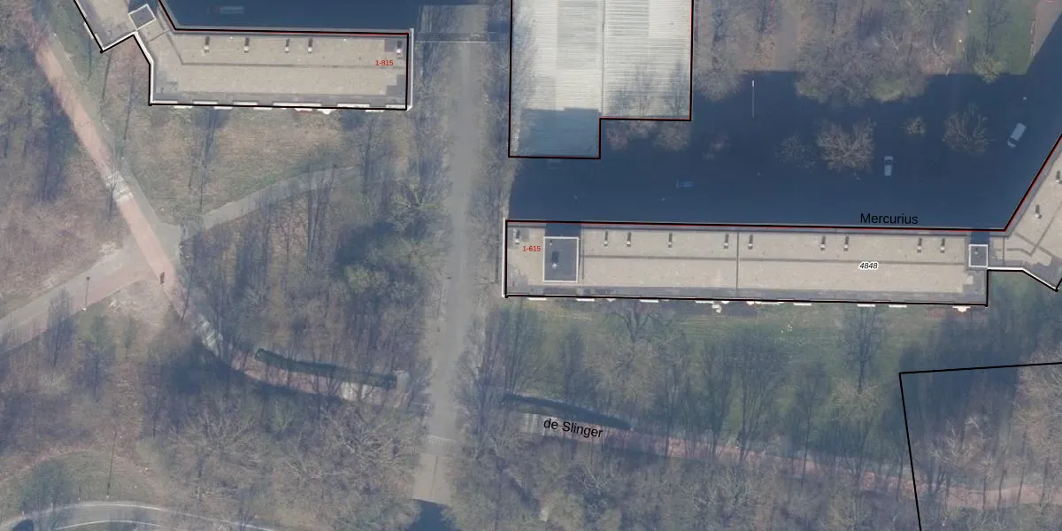 Het perceel waarop Mercurius 301 staat heeft een oppervlakte van 1975 m². Dit is een zeer groot perceel. De perceeloppervlakte wordt geregistreerd door het Kadaster. Gedetailleerde informatie over de maten van dit perceel kunt u vinden in het rapport Kadastrale kaart met maatvoering van Mercurius 301.