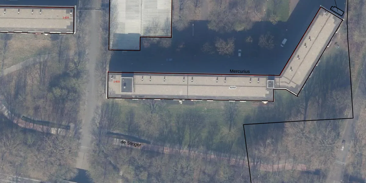Het perceel waarop Mercurius 405 staat heeft een oppervlakte van 1975 m². Dit is een zeer groot perceel. De perceeloppervlakte wordt geregistreerd door het Kadaster. Gedetailleerde informatie over de maten van dit perceel kunt u vinden in het rapport Kadastrale kaart met maatvoering van Mercurius 405.
