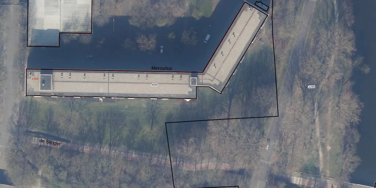 Het perceel waarop Mercurius 510 staat heeft een oppervlakte van 1975 m². Dit is een zeer groot perceel. De perceeloppervlakte wordt geregistreerd door het Kadaster. Gedetailleerde informatie over de maten van dit perceel kunt u vinden in het rapport Kadastrale kaart met maatvoering van Mercurius 510.