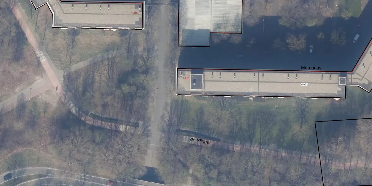 Het perceel waarop Mercurius 601 staat heeft een oppervlakte van 1975 m². Dit is een zeer groot perceel. De perceeloppervlakte wordt geregistreerd door het Kadaster. Gedetailleerde informatie over de maten van dit perceel kunt u vinden in het rapport Kadastrale kaart met maatvoering van Mercurius 601.