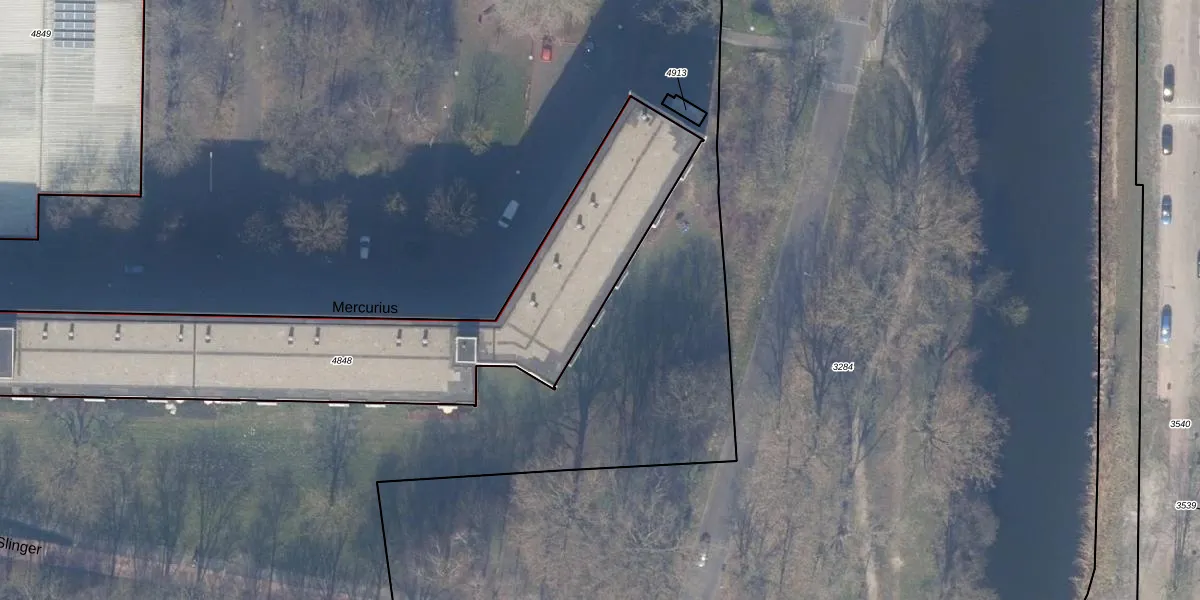 Het perceel waarop Mercurius 612 staat heeft een oppervlakte van 1975 m². Dit is een zeer groot perceel. De perceeloppervlakte wordt geregistreerd door het Kadaster. Gedetailleerde informatie over de maten van dit perceel kunt u vinden in het rapport Kadastrale kaart met maatvoering van Mercurius 612.
