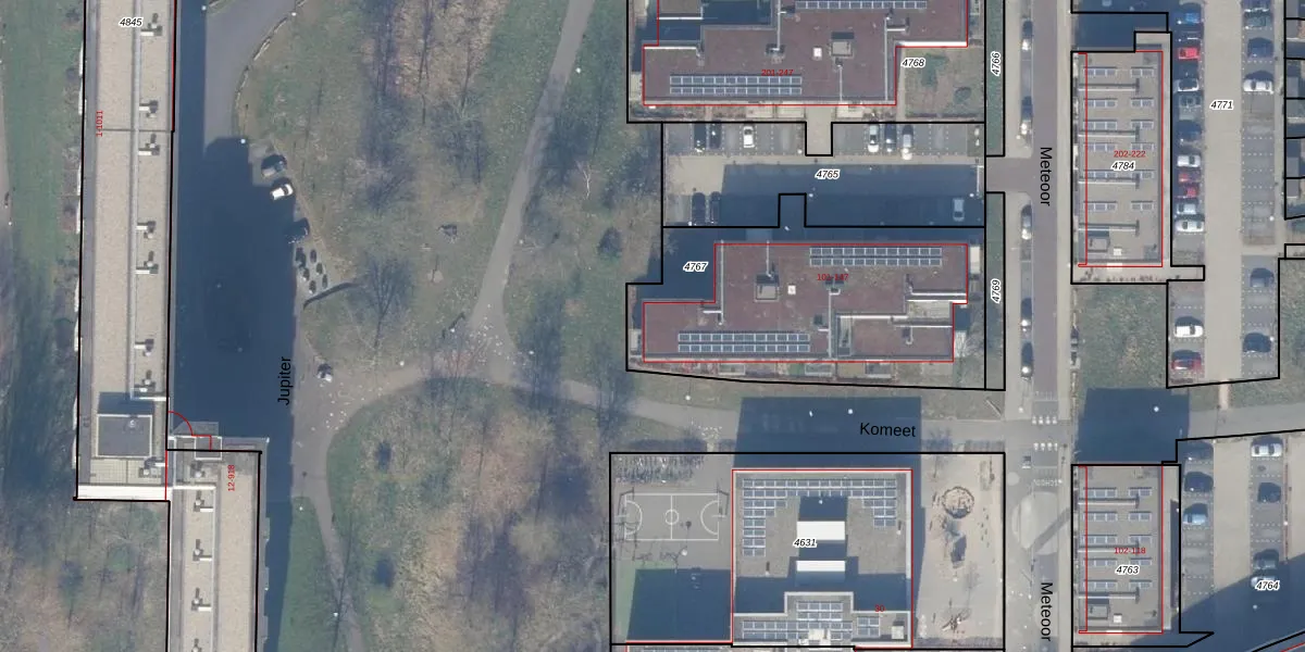 Het perceel waarop Meteoor 103 staat heeft een oppervlakte van 1280 m². Dit is een zeer groot perceel. De perceeloppervlakte wordt geregistreerd door het Kadaster. Gedetailleerde informatie over de maten van dit perceel kunt u vinden in het rapport Kadastrale kaart met maatvoering van Meteoor 103.