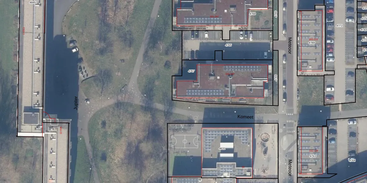 Het perceel waarop Meteoor 111 staat heeft een oppervlakte van 1280 m². Dit is een zeer groot perceel. De perceeloppervlakte wordt geregistreerd door het Kadaster. Gedetailleerde informatie over de maten van dit perceel kunt u vinden in het rapport Kadastrale kaart met maatvoering van Meteoor 111.
