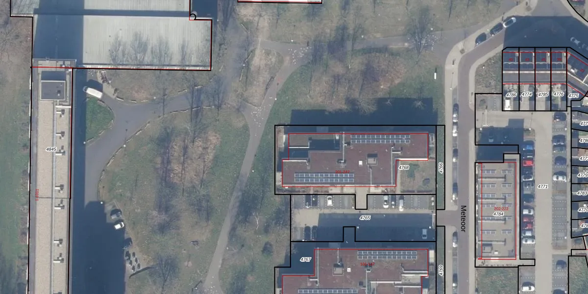 Het perceel waarop Meteoor 203 staat heeft een oppervlakte van 1310 m². Dit is een zeer groot perceel. De perceeloppervlakte wordt geregistreerd door het Kadaster. Gedetailleerde informatie over de maten van dit perceel kunt u vinden in het rapport Kadastrale kaart met maatvoering van Meteoor 203.