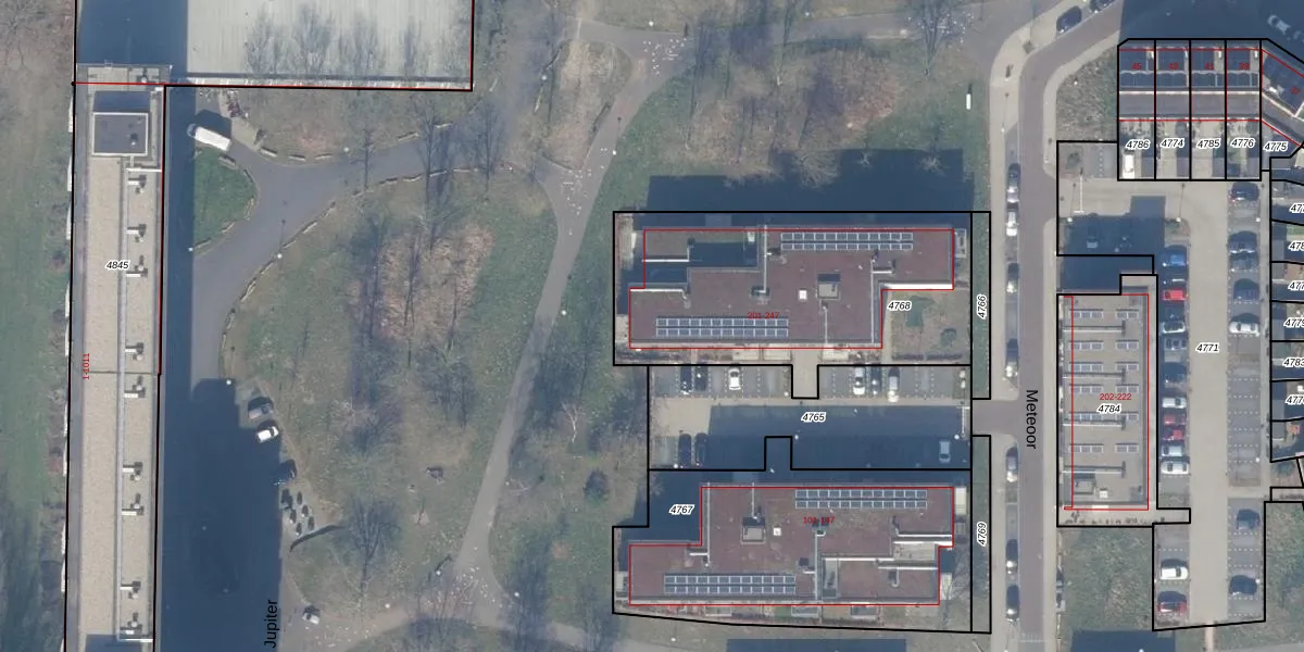 Het perceel waarop Meteoor 209 staat heeft een oppervlakte van 1310 m². Dit is een zeer groot perceel. De perceeloppervlakte wordt geregistreerd door het Kadaster. Gedetailleerde informatie over de maten van dit perceel kunt u vinden in het rapport Kadastrale kaart met maatvoering van Meteoor 209.