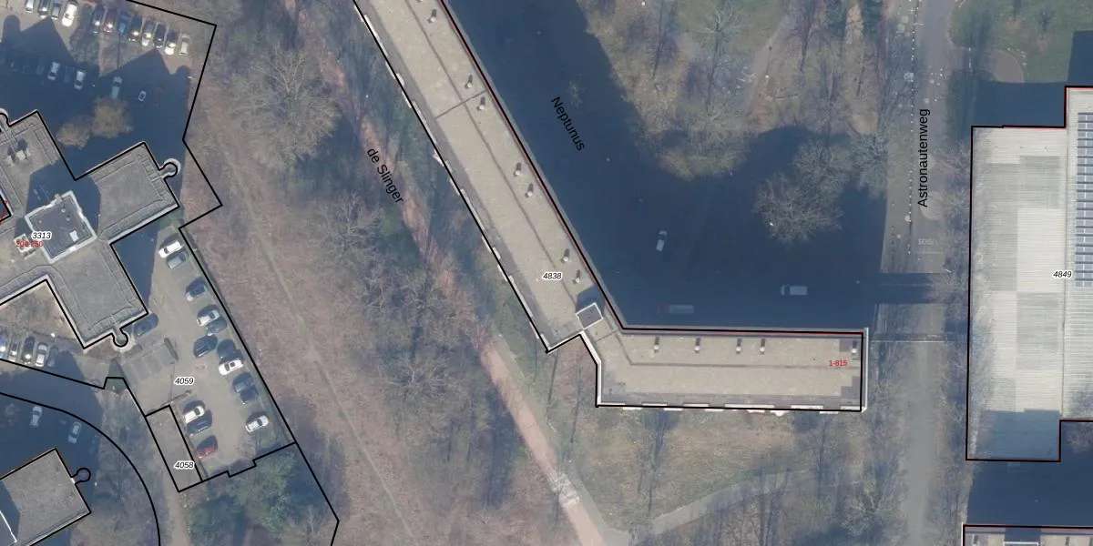 Het perceel waarop Neptunus 407 staat heeft een oppervlakte van 2010 m². Dit is een zeer groot perceel. De perceeloppervlakte wordt geregistreerd door het Kadaster. Gedetailleerde informatie over de maten van dit perceel kunt u vinden in het rapport Kadastrale kaart met maatvoering van Neptunus 407.