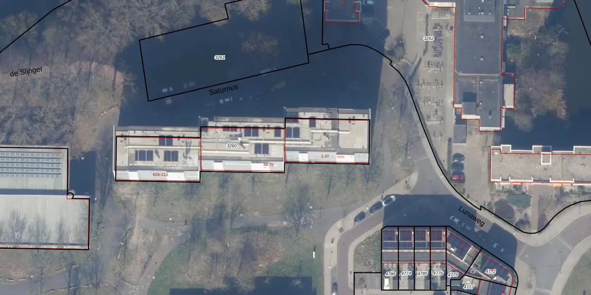 Het perceel waarop Saturnus 24 staat heeft een oppervlakte van 1288 m². Dit is een zeer groot perceel. De perceeloppervlakte wordt geregistreerd door het Kadaster. Gedetailleerde informatie over de maten van dit perceel kunt u vinden in het rapport Kadastrale kaart met maatvoering van Saturnus 24.