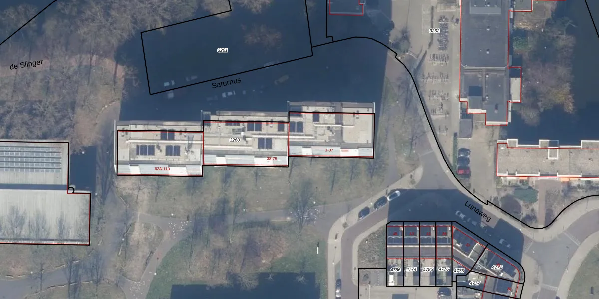 Het perceel waarop Saturnus 32 staat heeft een oppervlakte van 1288 m². Dit is een zeer groot perceel. De perceeloppervlakte wordt geregistreerd door het Kadaster. Gedetailleerde informatie over de maten van dit perceel kunt u vinden in het rapport Kadastrale kaart met maatvoering van Saturnus 32.