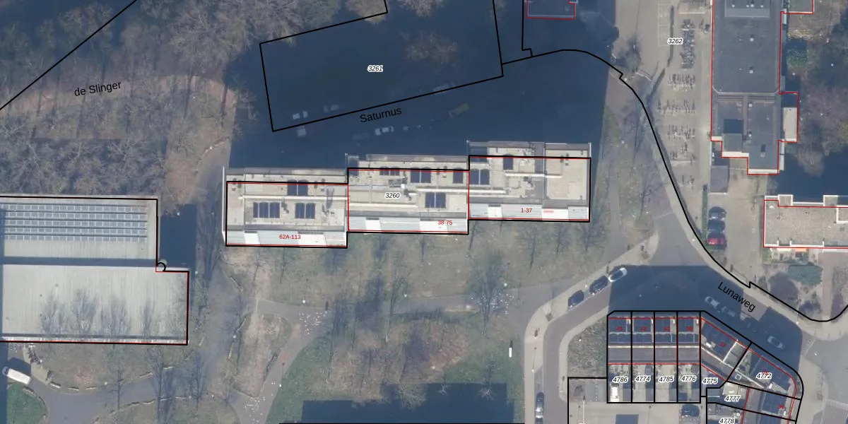 Het perceel waarop Saturnus 63 staat heeft een oppervlakte van 1288 m². Dit is een zeer groot perceel. De perceeloppervlakte wordt geregistreerd door het Kadaster. Gedetailleerde informatie over de maten van dit perceel kunt u vinden in het rapport Kadastrale kaart met maatvoering van Saturnus 63.