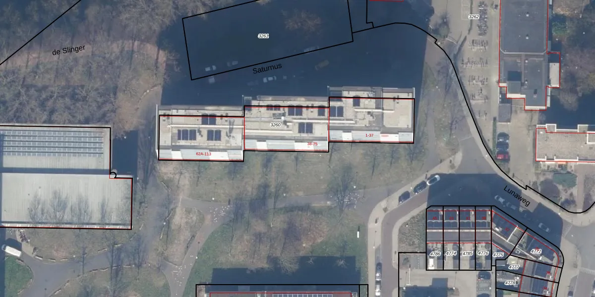 Het perceel waarop Saturnus 75 staat heeft een oppervlakte van 1288 m². Dit is een zeer groot perceel. De perceeloppervlakte wordt geregistreerd door het Kadaster. Gedetailleerde informatie over de maten van dit perceel kunt u vinden in het rapport Kadastrale kaart met maatvoering van Saturnus 75.