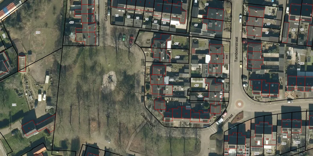 Gildestraat 13 is gelegen op kadastraal perceel ESL00N419. Deze kadastrale aanduiding is uniek en wordt gebruikt door het Kadaster om eigendomsrechten en andere zakelijke rechten vast te leggen. Het perceel maakt onderdeel uit van de kadastrale gemeente Eersel.