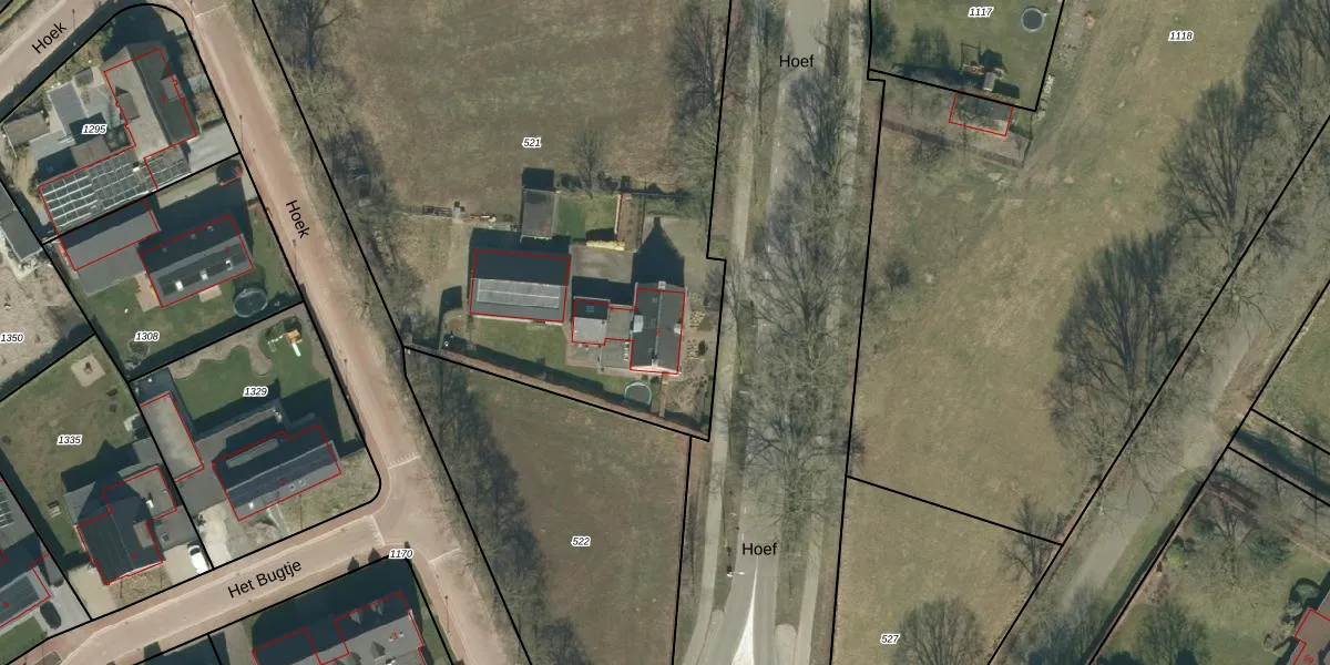 Het perceel waarop Hoef 2 staat heeft een oppervlakte van 4980 m². Dit is een zeer groot perceel. De perceeloppervlakte wordt geregistreerd door het Kadaster. Gedetailleerde informatie over de maten van dit perceel kunt u vinden in het rapport Kadastrale kaart met maatvoering van Hoef 2.