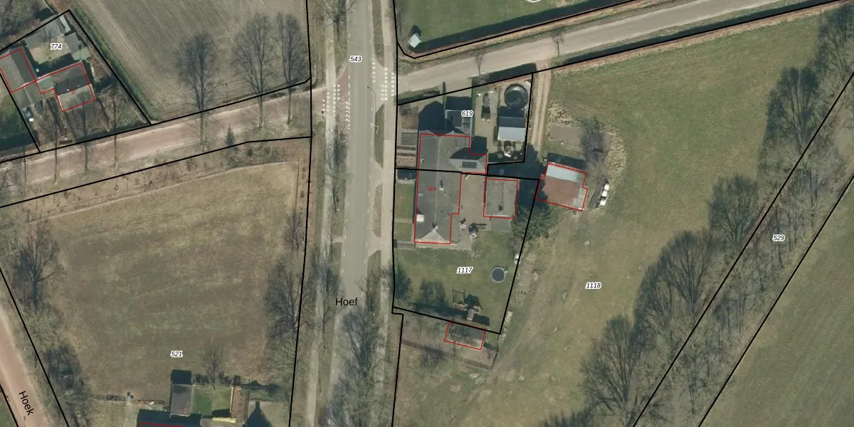 Het perceel waarop Hoef 3 staat heeft een oppervlakte van 1035 m². Dit is een zeer groot perceel. De perceeloppervlakte wordt geregistreerd door het Kadaster. Gedetailleerde informatie over de maten van dit perceel kunt u vinden in het rapport Kadastrale kaart met maatvoering van Hoef 3.