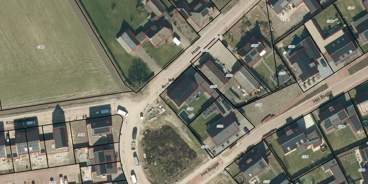 Het perceel waarop Hoek 19 staat heeft een oppervlakte van 546 m². Dit is een groot perceel. De perceeloppervlakte wordt geregistreerd door het Kadaster. Gedetailleerde informatie over de maten van dit perceel kunt u vinden in het rapport Kadastrale kaart met maatvoering van Hoek 19.
