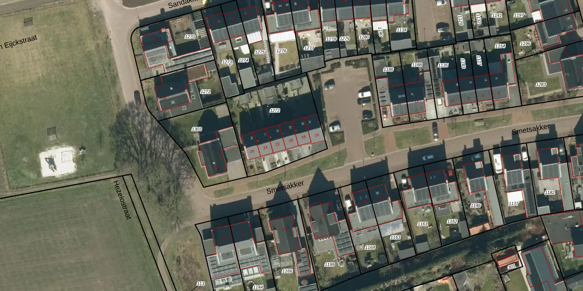 Smetsakker 20 is gelegen op kadastraal perceel ESL00H1272. Deze kadastrale aanduiding is uniek en wordt gebruikt door het Kadaster om eigendomsrechten en andere zakelijke rechten vast te leggen. Het perceel maakt onderdeel uit van de kadastrale gemeente Eersel.