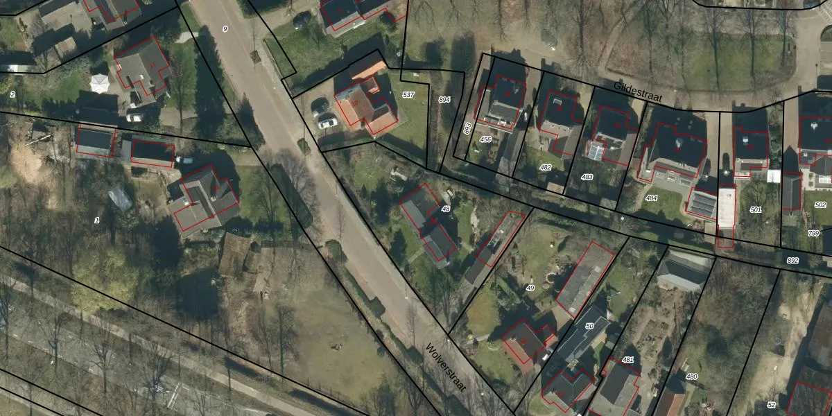 Gebruik de zoekbalk of klik op een perceel voor informatie over de adressen binnen dit perceel.