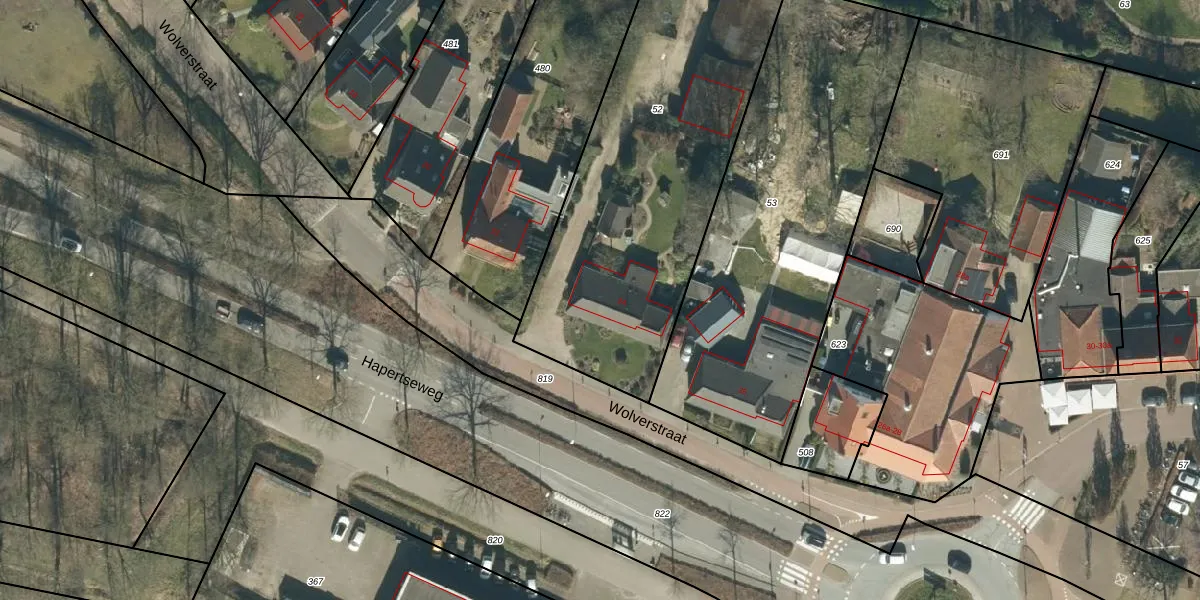 Gebruik de zoekbalk of klik op een perceel voor informatie over de adressen binnen dit perceel.