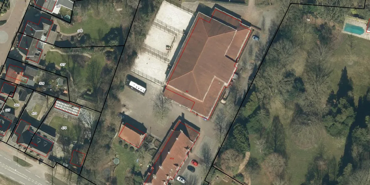 Het perceel waarop Wolverstraat 40 staat heeft een oppervlakte van 4,4 ha. Dit is een zeer groot perceel. De perceeloppervlakte wordt geregistreerd door het Kadaster. Gedetailleerde informatie over de maten van dit perceel kunt u vinden in het rapport Kadastrale kaart met maatvoering van Wolverstraat 40.