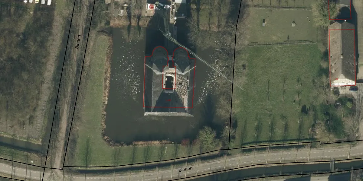 Het perceel waarop Binnen 1-4 staat heeft een oppervlakte van 1,1 ha. Dit is een zeer groot perceel. De perceeloppervlakte wordt geregistreerd door het Kadaster. Gedetailleerde informatie over de maten van dit perceel kunt u vinden in het rapport Kadastrale kaart met maatvoering van Binnen 1-4.