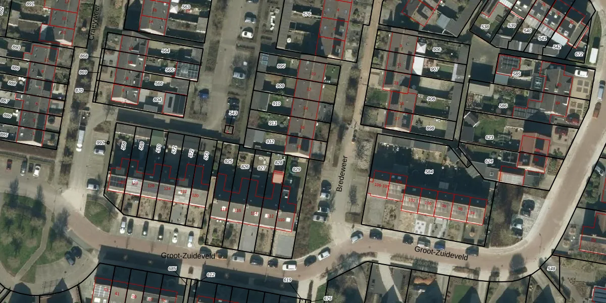 Het perceel waarop Bredeweer 18 staat heeft een oppervlakte van 175 m². Dit is een middelgroot perceel. De perceeloppervlakte wordt geregistreerd door het Kadaster. Gedetailleerde informatie over de maten van dit perceel kunt u vinden in het rapport Kadastrale kaart met maatvoering van Bredeweer 18.