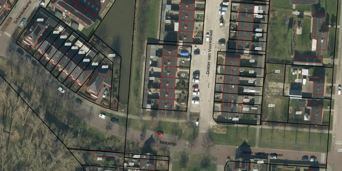 Het perceel waarop Dokter van Vuurestraat 40 staat heeft een oppervlakte van 990 m². Dit is een groot perceel. De perceeloppervlakte wordt geregistreerd door het Kadaster. Gedetailleerde informatie over de maten van dit perceel kunt u vinden in het rapport Kadastrale kaart met maatvoering van Dokter van Vuurestraat 40.