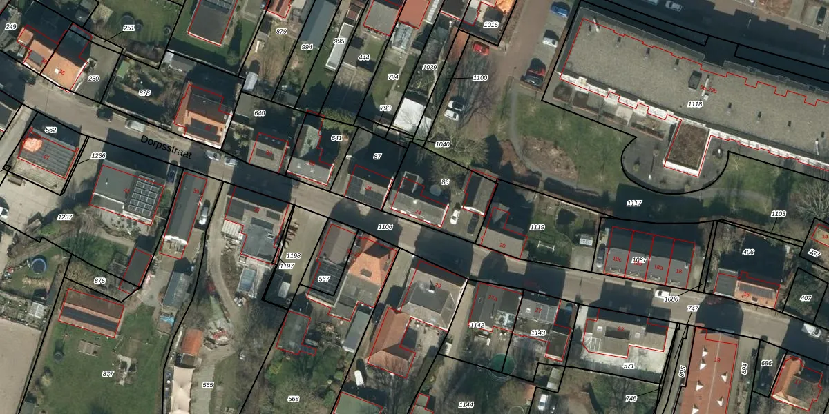 Het perceel waarop Dorpsstraat 24 staat heeft een oppervlakte van 395 m². Dit is een groot perceel. De perceeloppervlakte wordt geregistreerd door het Kadaster. Gedetailleerde informatie over de maten van dit perceel kunt u vinden in het rapport Kadastrale kaart met maatvoering van Dorpsstraat 24.