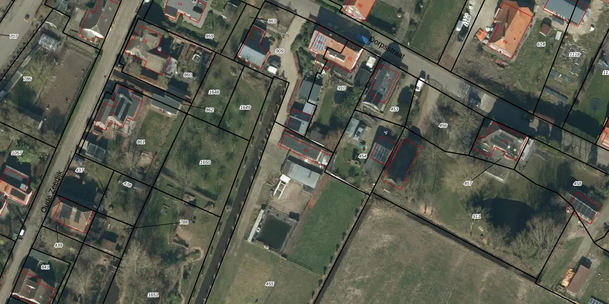 Het perceel waarop Dorpsstraat 83 staat heeft een oppervlakte van 3875 m². Dit is een zeer groot perceel. De perceeloppervlakte wordt geregistreerd door het Kadaster. Gedetailleerde informatie over de maten van dit perceel kunt u vinden in het rapport Kadastrale kaart met maatvoering van Dorpsstraat 83.