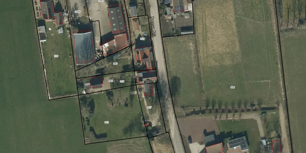 Dussen Dijk 23 is gelegen op kadastraal perceel DSN03S316. Deze kadastrale aanduiding is uniek en wordt gebruikt door het Kadaster om eigendomsrechten en andere zakelijke rechten vast te leggen. Het perceel maakt onderdeel uit van de kadastrale gemeente Dussen.