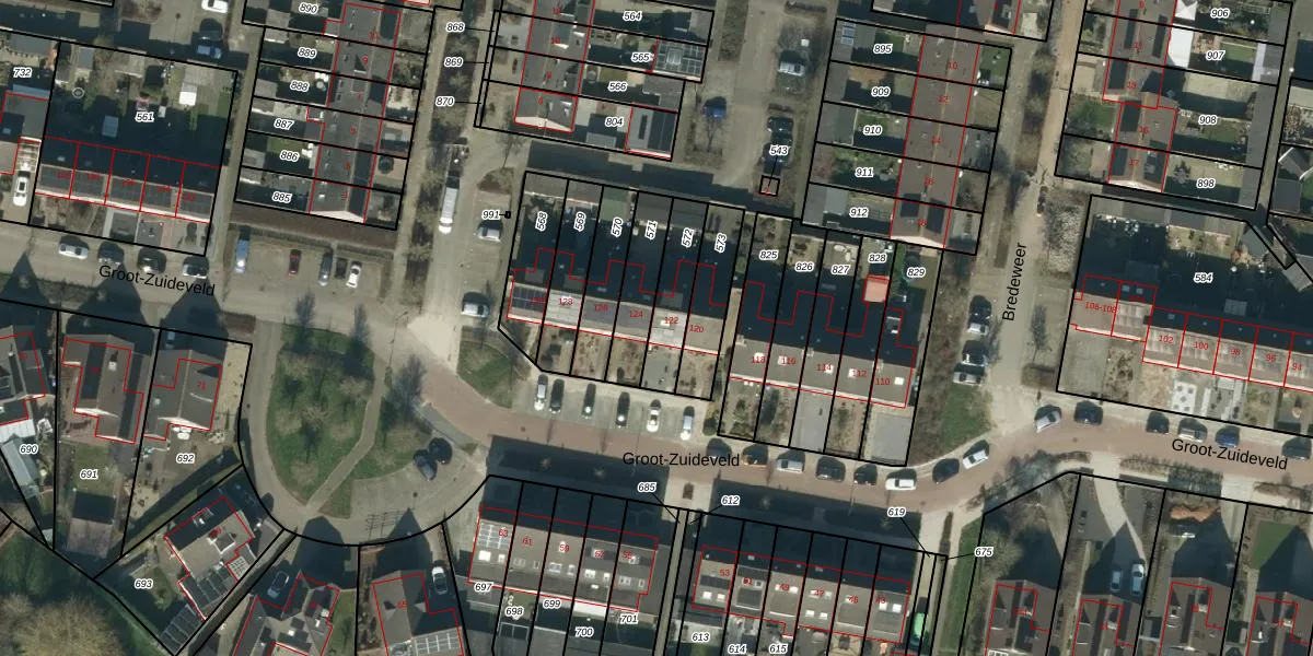 Gebruik de zoekbalk of klik op een perceel voor informatie over de adressen binnen dit perceel.