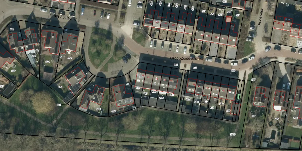 Het perceel waarop Groot-Zuideveld 61 staat heeft een oppervlakte van 150 m². Dit is een middelgroot perceel. De perceeloppervlakte wordt geregistreerd door het Kadaster. Gedetailleerde informatie over de maten van dit perceel kunt u vinden in het rapport Kadastrale kaart met maatvoering van Groot-Zuideveld 61.