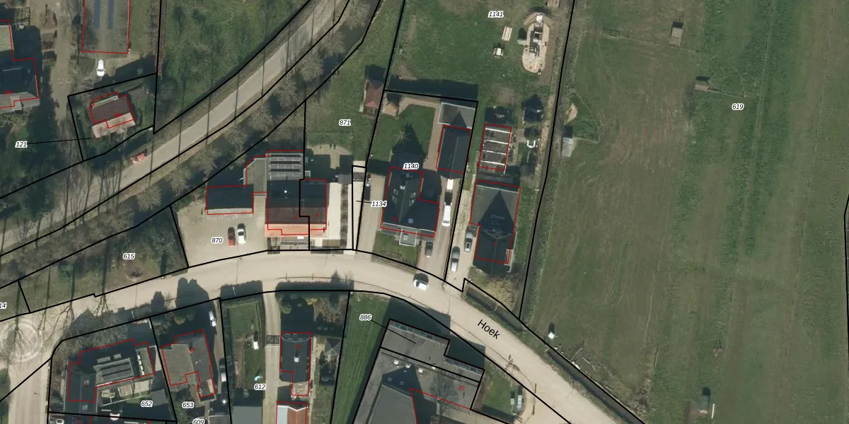 Het perceel waarop Hoek 2-a staat heeft een oppervlakte van 899 m². Dit is een groot perceel. De perceeloppervlakte wordt geregistreerd door het Kadaster. Gedetailleerde informatie over de maten van dit perceel kunt u vinden in het rapport Kadastrale kaart met maatvoering van Hoek 2-a.